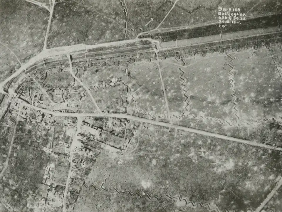 A slight adjustment had to be made first, however, and the first and third companies advanced behind the creeping barrage, while the second and fourth companies turned aside, changing direction to the right and entering Bellenglise.