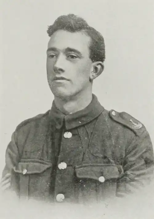 During the attack on Mannequin Hill, Lance-Corporal Coltman, of the 1/6th North Staffords, being in charge of the stretcher-bearers attached to his unit, earned the Victoria Cross by conspicuous bravery in the rescue of badly wounded men. Already the proud possessor of the Distinguished Conduct Medal and the Military Medal, in each case with the coveted bar which indicates that the decoration has been twice won, this N.C.O. has himself contributed a brilliant page to the history of the Division. During the heavy fighting about Mannequin Hill, word was brought to him that three of our men, too severely wounded to move, had been left behind when the battalion retired on account of the overwhelming enfilade fire from the summit of the hill. On his own initiative, Lance-Corporal Coltman then went forward into the valley in which the men had been left and, under concentrated enemy artillery and machine-gun fire, succeeded in locating them, dressed their wounds, and carried each one to his stretcher squad in rear of our line, thus saving their lives. Without pause or rest, he assisted in dressing and carrying wounded for forty-eight hours, his efforts continuing until the last man had been attended to.