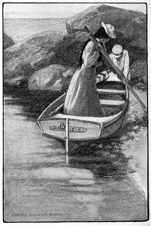 Amy obeyed meekly; she realized that the boat was moving, and she picked up the other oar, ready to row when she should feel that there was water under the boat.