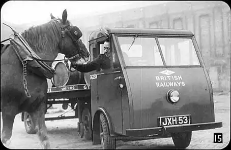 For many years the railways depended on horse-drawn road cartage services. |
