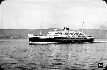 Here, on her trials off Holyhead, is the motor vessel Hibernia, one of the ships in which passengers by the Irish Mail from Euston to Holyhead travel to complete their journey to Dublin. She’s a ship of over 5,000 tons, and has accommodation for 2,000 passengers. She and her sister ship Cambria are among Britain’s largest cross-Channel vessels. Hibernia, of course, is the ancient name for Ireland, and Cambria that for Wales. |