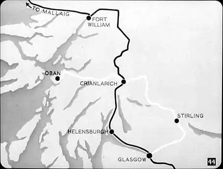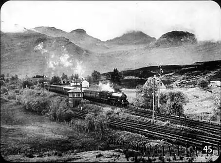 This photograph was taken when the first train ran over the shorter route from Glasgow to Oban. The train is just about to transfer to the line to Callander and Oban. This new routing has substantially reduced the journey-time for the Glasgow-Oban journey. |