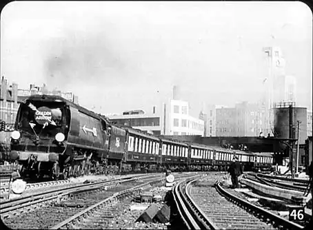 I think I may safely say that Britain makes the best steam engines in the world. We still pin our faith mainly to steam engines, for economic and other reasons, but that is not to say that British Railways avoid using other forms of power. Diesel and diesel-electric engines are in constant use, and the line from Manchester to Sheffield, for example, when it is electrified, will be run entirely by electric locomotives... |