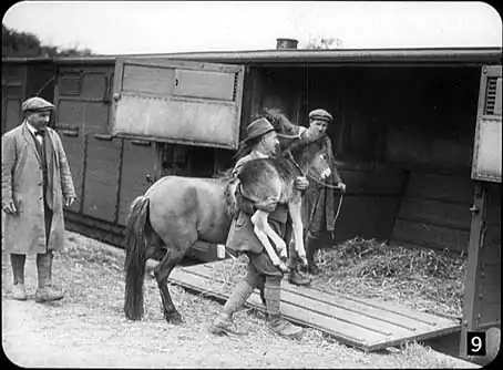 Sometimes they move whole farms from one part of the country to another and horses, cows and sheep are frequently railway travellers. There’s a big trade in livestock with Ireland, for instance, and the railways have special accommoda-tion for livestock at Heysham, Holyhead and Fishguard. For horses there are special carriages, and in this picture we see a pony and a foal being put in a British Railways horse-box.