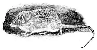 Fam. 2. Muridae.—This family, that of the Rats and Mice in a wide sense, is the most extensive family of Rodents. In it Mr. Thomas includes no less than seventy-six genera. The molars are generally three. The tail is fairly long, or very long, and the soles of the feet are naked.