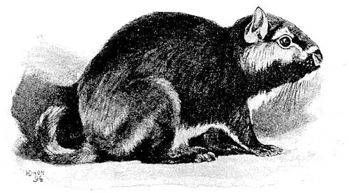 Fossil Rodents.—Quite a large number of existing genera of Rodents are known from even the earlier strata of the Tertiary period. The Squirrels (and even the genus Sciurus itself) occur in the Upper Eocene. So, too, do the genera Myoxus, and (in South America) Lagostomus. Spermophilus, Acomys, Hystrix, Lagomys, Lepus, Hesperomys are known from Miocene rocks. Rhizomys, Castor, Cricetus, Mus, Microtus, and some others appear to have originated so far as we know in the Pliocene, while a still larger series of existing genera are Pleistocene. It is interesting to note that some of the extinct genera were much larger than recent forms. At present, Hydrochoerus is the biggest Rodent; but the genus Megamys from the Pampas formation of Argentina was "nearly as large as an ox." The wider range of genera in the past is illustrated by Hystrix, which, now an Old-World form, is represented by remains in the Miocene and Pliocene of America.