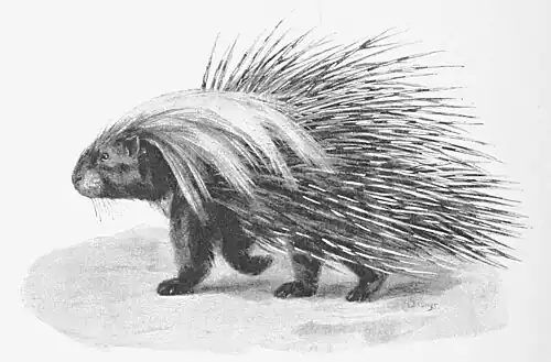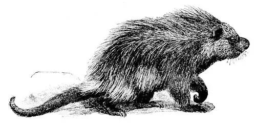 The genus Erethizon, the "Urson" of Canada, has a short, stumpy tail. Its spines are almost hidden by enveloping hair. The fore-feet have four, the hind-feet five toes. The short tail of this creature is remarkable when we reflect upon its climbing habits. It appears, however, to be a weapon with which it strikes sideways at the enemy.