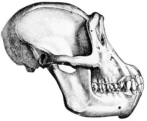 Fig. 276.—Skull of Chimpanzee. Anthropopithecus troglodytes. × ⅓. (After de Blainville.)