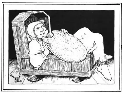 "Well, honest man," replied Oonagh, "if you're not able to eat the bread, say so quietly, and don't be wakening the child in the cradle there. There, now, he's awake upon me."