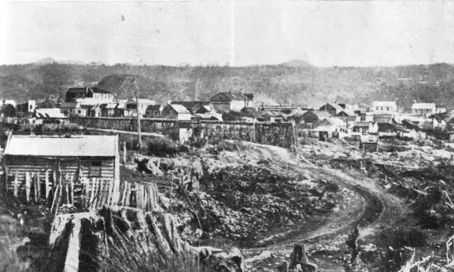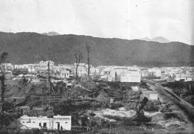 On 27th May, 1868, Mr. Pell, Road Overseer, received instructions to find “the best route for a dray-road to connect Charleston with Brown’s Terrace and Addison's Flat.” “The route was then,” the Westport Times stated, “via the Pioneer Ford.” It is surmised that this ford was on the Little Totara River, and in connection with “Hall’s Track” from the Nine-Mile Beach. In 1869 the District Engineer of Goldfields recommended that Charleston streets be “principally attended to by the prisoners of the jail; but to meet the expense of carrying metal, etc., as occasionally required, I estimate for £200.” The task that the stout-hearted pioneers, inspired by the “wine of freedom and the gold of hope,” undertook in transforming this virgin land into the thriving centre that it became in a few short years, was formidable, but it was tackled with a will, and the town grew as though by magic.