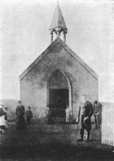 In 1913, when the church collapsed in a gale, there were so few worshippers that a sufficiently large church was built out of the wreckage, the builders being Messrs. Hurburgh and Percy Craddock. This small building still stands. The parsonage, or vicarage, adjoined the church, and a report made in 1927 stated that “all trace of it has long since vanished.”