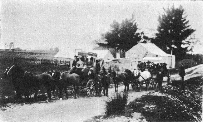 One of the landmarks of the old settlement was the coach-stop house, the Shamrock Hotel, established in 1867 by J. Hayes. The premises and license were acquired in 1868 by Mr. Philip McEnroe, a punt owner at the Buller, who occupied them for about thirty-five years. It was taken over by Mrs. McCann about 1904. She conducted it until 1939, although the license lapsed in 1938. McEnroe also owned freight wagons plying between Westport and Charleston, one of his drivers being Alf Hunt, a well-known local cricketer.