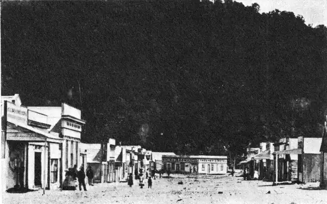 The Roman Catholic Church and the Church of England were erected in 1869. The latter was, in later years, pulled down to allow of its site being sluiced for gold.