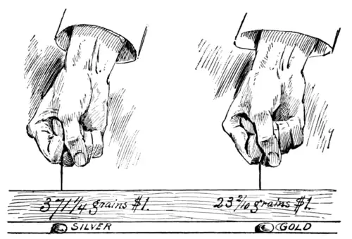 "The quantity of silver in the silver dollar was not disturbed. It being the unit, was respected, and remained the same. The gold dollar was cut down from 24.7 grains pure gold to 23.2 grains of pure gold. So that now it is one-sixteenth the weight of the pure silver (371¼ grains) in the silver dollar. This is what ratio means."
