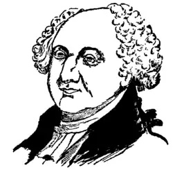 ADAMS, JOHN, the second President of the United States; was born at Braintree, near Boston, on Oct. 19, 1735. He practiced as a lawyer, and, in 1770, he was one of the selectmen deputed by the several towns of the province, who met in convention at Boston. In 1773, he became a member of the Council of State. He advocated and seconded the Declaration of Independence. In 1780 he represented the United States in Holland, and in 1782 co-operated with Franklin and the other American commissioners in negotiating a treaty of peace with England. In 1785 he became the first Minister Residentiary to the court of St. James, and stayed in England till 1788. In 1789, when Washington was elected President, he was made Vice-President, and in 1793 had the same office again conferred upon him. In 1797, on the retirement of Washington, he was chosen President, and at the close of his term of four years, being defeated for re-election by a majority of eight votes, given to his Democratic adversary, Jefferson, he retired from public life, and died at Quincy, July 4, 1826.