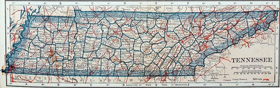 TENNESSEE, a State in the South Atlantic Division of the North American Union; bounded by Kentucky, Virginia, North Carolina, Georgia, Alabama, Mississippi, Arkansas, and Missouri; admitted to the Union, June 1, 1796; capital, Nashville; number of counties, 96; area, 42,050 square miles; pop. (1890) 1,767,518; (1900) 2,020,616; (1910) 2,184,789; (1920) 2,337,885.