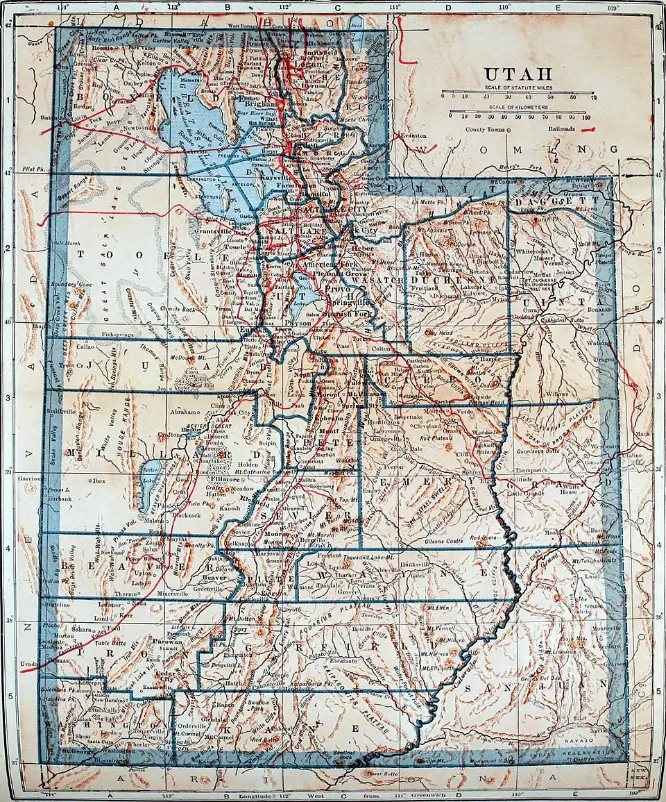 History.—The region embracing Utah was acquired from Mexico in 1848, and the Territory was organized in 1850, comprising Utah, Colorado, Wyoming, and Nevada. The Mormons led by Brigham Young settled in Salt Lake City valley in 1847, and rapidly occupied the fertile valleys of the Territory, few Gentiles settling there till the extension of railroads made it more easily accessible. At a later period the Gentile population rapidly increased, and vigorously opposed the supremacy of the Mormons, who controlled all government positions. A bill passed by Congress in 1882 disfranchised all polygamists and annulled the act of the Territorial Legislature extending the franchise to women. In 1887 a bill was passed, which confiscated the property of the Mormon Church and the perpetual Emigration Fund, with the exception of the church buildings and parsonages, and devoted it to the support of public schools in the Territory. The Mormons renounced polygamy in 1890. For a considerable time previously efforts had been made to have Utah admitted into the Union; but this was not acceptable to Congress till after the abolition of polygamy. A bill was passed in December, 1893, making Utah a State. It was not finally consummated, however, till Jan. 4, 1896, when it entered into Statehood as the 45th State of the Union.