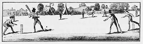 Callaway keeps a very accurate length, and generally makes the ball go across with his arm, though, when the wicket helps him, he can bring the ball back pretty quickly. Upham and M'Arthy can both make the ball break, but they bowl too much at the leg stump, and not enough at the off and outside the off stump. Fisher has a good action, but does not like being hit, and is, perhaps, rather past his best.