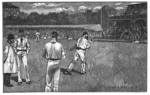 This kind of wicket is oftener seen at Lord's after a good deal of rain and a drying sun than anywhere else. We all remember that great match when the Australians made their first appearance there in 1878. I had a fair conception of what might happen, and after hitting the first ball of the match to the boundary was not surprised at being caught out from the fourth. One ball of Spofforth's was enough for me the second innings. The best advice I can give is to watch every ball on a wicket of that kind, and score when you can.