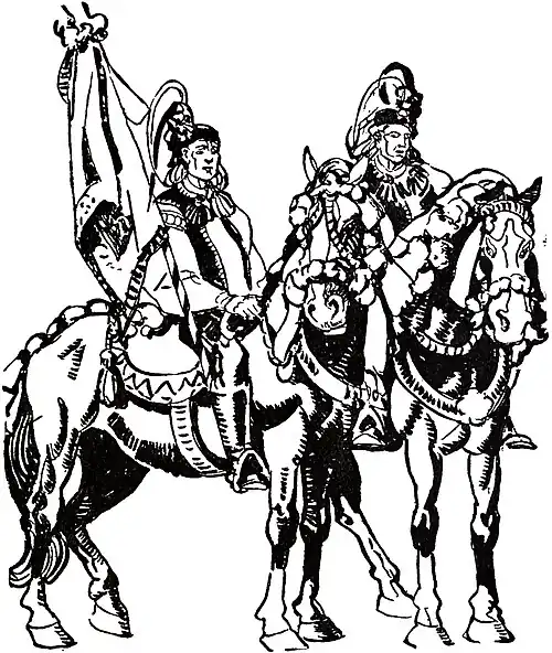 The next day Budinka was led out. As on the day before, the unknown knight appeared, this time wearing a white plume. He attacked the eighteen-headed dragon and, after valiant conflict, despatched him. Then before any one could reach him, he turned and rode away.
