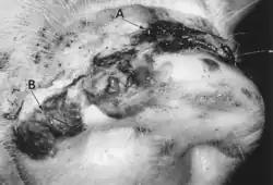 VSV apparently requires introduction into the epithelium through insect bites or via fomites into minor abrasions of the oral or nasal mucosa, teats, or feet (Patterson et al. 1955). Virus replicates in the stratum germinativum. A vesicle and an exudate form, usually 2-3 days postinoculation. Without secondary infection, which may involve the subcutaneous tissue, the lesion heals in 1-2 weeks.