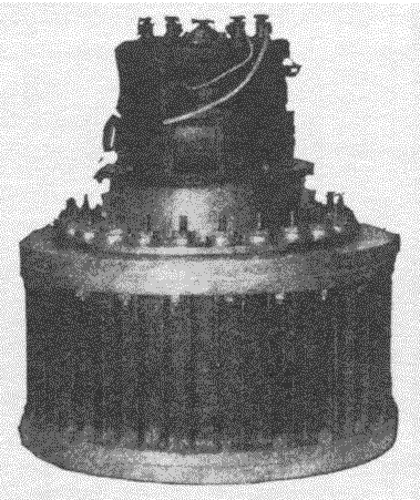 Fig. 4. A Massive Mercury Interrupter Devised by Tesla for Handling 50 H. P. of Electrical Energy at a Rate of 100,000 Breaks Per Second.