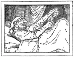 After that the king says to Molly: "Molly, you are a clever girl, but if you would do better yet, and steal the giant's ring that he wears on his finger, I will give you my youngest son for yourself." Molly said she would try. So back she goes to the giant's house, and hides herself below the bed. The giant wasn't long ere he came home, and, after he had eaten a great big supper, he went to his bed, and shortly was snoring loud. Molly crept out and reached over the bed, and got hold of the giant's
