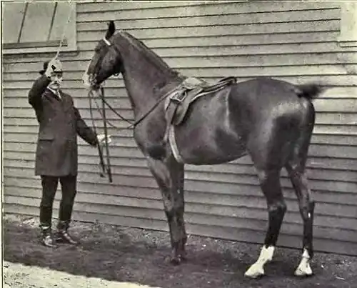 At first, the horse will be uneasy. But shortly he becomes calm, finding that no pain follows the touch of the whip, and encouraged by the man's voice and his complete immobility. Thereupon, the