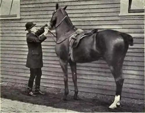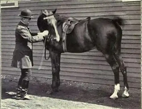 The hands holding the reins can, by different positions and manipulations, produce on the animal mechanism a great variety of effects, of which the three principal are, directing, raising, and maintaining. The work of the flexions will introduce the horse to these different effects, which later, after the rider is mounted, will be further complicated by the effects of the legs.