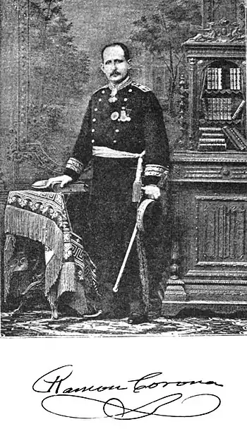 General Ramon Corona, one of the bravest and most faithful of Mexico's sons, was minister to Spain for eleven years, having returned home in March, 1885. He is a man of distinguished appearance, a true type of the gallant soldier, with a splendid physique, noble head, fine, open expression, and the polished manner and gentle courtesy