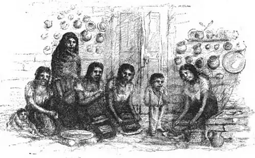 Their social life is of a free nature, and consequently but few marriages take place among them. The women are vulgarly called gatas (cats), or garbanceras (bastards); the former are those who usually perform the offices of chambermaids, nurses and cooks, the latter generally do the marketing.