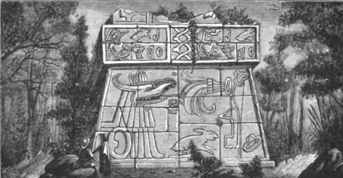 A contemplation of this pyramid naturally led us to think of those other wondrous structures, Papantla, Misantla, and Mapilca, erected by the Totonacs, and situated between Jalapa and the Gulf coast; and also Xochicalco, Uxmal, Palenque, and others in other parts of the republic. But little is known about the famous and ancient ruins bearing the poetical name of Xochicalco, or "Hill of Flowers." This ignorance is probably due to its isolated and rather inaccessible position. The cerro (hill) is three hundred feet in height, and its summit reached by five winding stone stairways.
