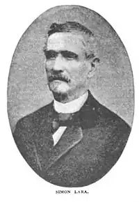 Simon Lara, of Spanish parentage, born in New York, an American by virtue of his birth, but having lived the greater part of his life in Mexico, was the generous father and founder, having donated the ground and money to the extent of twelve thousand dollars.