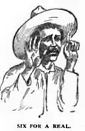 The vender began counting slowly the fingers of his right hand with his left—"uno, dos, tres, cuatro, cinco,"—then holding up the index finger of the left hand —seis—and extending the six fingers, palms to the front, waved them back and forth before his determined face, as in low guttural tones that made me shiver, he said: ''No, señ-o-ri-ta,