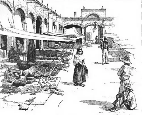 I called upon Don Juan Bautista to go with me to market, when he at once entered into a lengthy discourse about ladies going to such places; that the jente decente (people of pedigree) never did such things; that "the people in the streets and markets would talk much and say many things." But of this I had already had a foretaste.