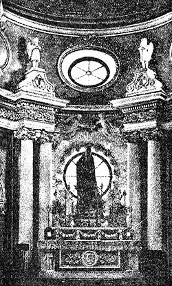 The house contains about fifty rooms, including three parlors, a grand salon and two smaller ones, all fitted up luxuriously. The oratorio (chapel) is impressive with its altar handsomely draped, and the picture of the Virgin Guadalupe in the center—crosses, silver candelabra, kneeling-stools in plush and gold, magnificent vestments, and I was surprised and pleased to see, on either side, American mottoes—"In God we trust," and "God bless our home."