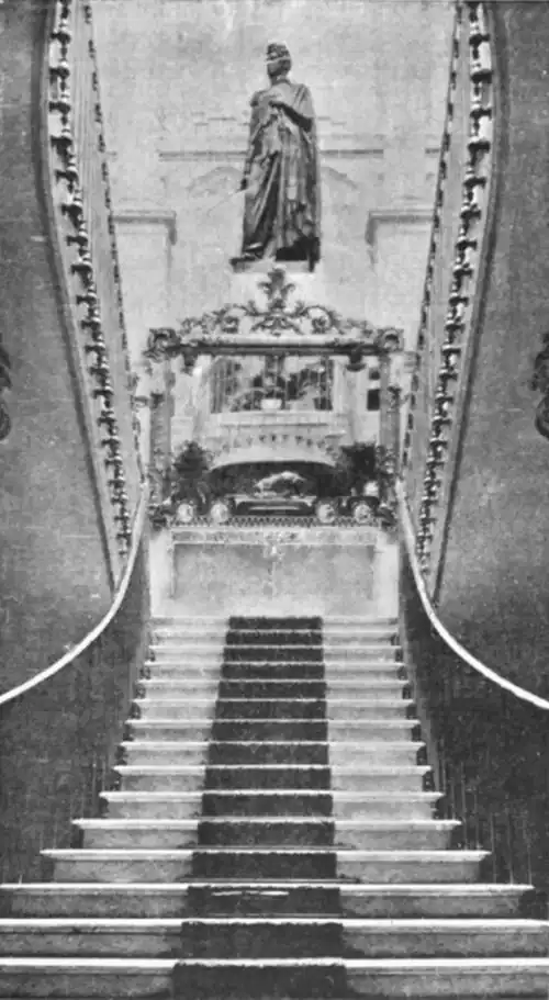 The house is entered as usual through the zaguan, from which a spacious stairway, branching to right and left, leads to the principal apartments. A bronze statue of Guerrero, a leading hero of the Independence war, who was grandfather of the owner of the house, now stands as seen in the illustration. The stairs and floors of the corridors and halls are of the finest Italian marble; while around and on either side are tropical plants of every shade and tint; and on the north side swings an aviary filled with bright-hued singing birds.