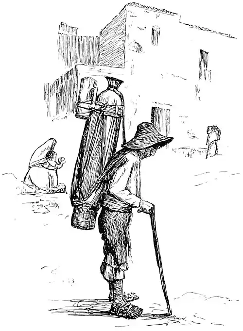 Ere we had arisen from our humble position on the floor, we glanced upward at the walls, lined with pictures, where our attention was riveted upon one of them which would of itself have put us to flight. It represented some penitents at confession, while the devil, painted red, pranced around on all fours, evidently angered because these devotees were lost to him.