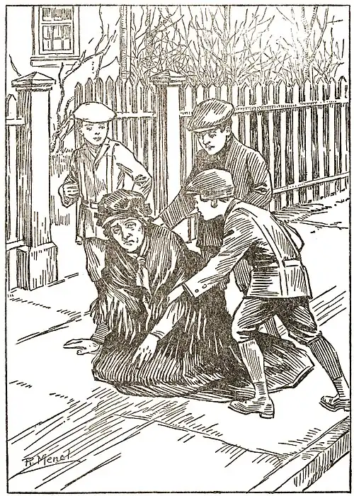 "Maybe she's dead!" gasped Sammy Brown, as he reached the side of Frank, and looked down on the motionless old lady.