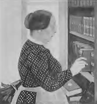 The first of these thorns in the flesh to make its existence manifest came when I discovered that Galvin possessed nothing with even a family resemblance to a bump of locality. Her capacity for dusting was inexhaustible; but when it came to replacing the articles thus treated she was something less systematic than a magpie. For one thing, she manœuvred my books in the same manner as my mattress and my pillows, with the evident impression that, like the former, they were reversible, and, like the latter, interchangeable at will. The effect of this inspiration was volume five where volume two should be, volume one in the place of volume six, and volumes three and four standing, with an air of extreme dissatisfaction, on their heads. The same rule applied to my pictures, each of which, after the morning’s dusting was completed, had a pronounced list, like a ship with her port coal-bins full and her starboard bunkers empty. So, too, I would find all the objects on my sideboard crowded desperately to one side, as if they had been the passengers on an excursion steamer in the act of passing a battleship or a boat-race. It would be impossible for me to compute the amount of time which I expended daily in restoring the laws of proportion and equilibrium which Galvin had knocked into a cocked hat.