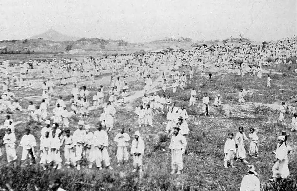 Fig. 208.—Group of Koreans at Gyoha, being addressed by a public speaker on Swing day.