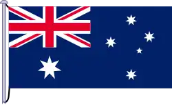 1. The Australian National Flag is the British Blue Ensign, consisting of a blue flag with the Union Jack occupying the upper quarter next the staff, differenced by a large white star (representing the six States of Australia and the Territories of the Commonwealth) in the centre of the lower quarter next the staff and pointing direct to the centre of the St. George’s Cross in the Union Jack and five white stars, representing the Southern Cross, in the fly, or half of the flag further from the staff. The descriptions and positions of the stars are in accordance with the following tables:—