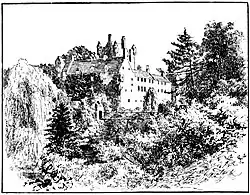It is surprising that he should have thought that there could ever have been a moat on a rock high above the river. Johnson nevertheless also mentions it. What they mistook for a moat is the