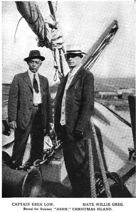 Knowing the weakness of the Pacific Islanders for exploiting wrecks, I wrote notifications and cabled warnings to Noumea, Suva, Apia and Tahiti to the effect that the wreck was our property. Also, to offset the enterprising spirit to be found in the Hawaiian Islanders I cabled James Mclnerney, of Honolulu, to insert a warning in the press against tampering with the Aeon or its cargo. But press warnings have no terrors for Hawaiians, for the Concord, under the command of Captain Eben Low (whom the Honolulu Advertiser described as a cow-puncher and gentlemanly pirate), was fitted out at once, and left for the wreck of our ship with full freebooter intentions.