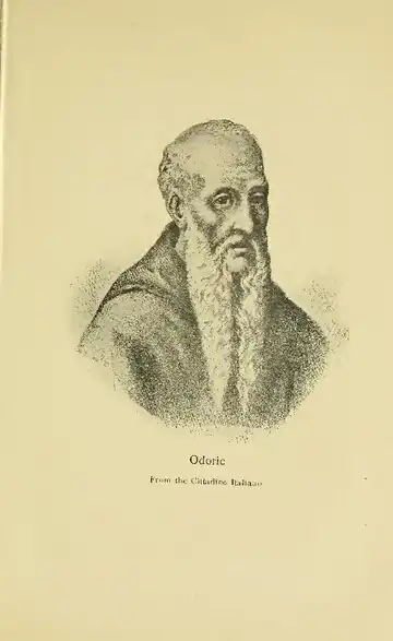 Odoric is supposed to have been born in 1286, to have begun his Oriental travels about 1318, to have returned to Europe in 1330 or thereabouts, and to have dictated his reminiscences to a brother Franciscan at Padua ere he crept home to the House of his Order at Udine, where he died in January, 1331. He made his way to Constantinople, thence overland to the Persian Gulf, eventually reaching the coast of Malabar, where he visited the shrine of St. Thomas the Apostle at Mailapur, the modern Madras.