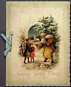 Now the pack is fairly rifled, and poor Santa's well-nigh stifled;