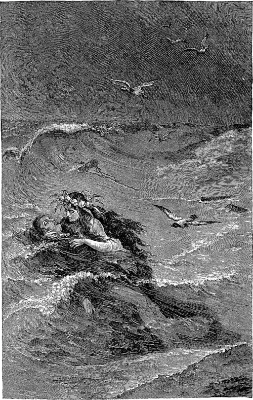 "I must travel," he had said to her; "I must see this beautiful princess; my parents desire it; but they will not oblige me to bring her home as my bride. I cannot love her; she is not like the beautiful maiden in the temple, whom you resemble. If I were forced to choose a bride, I would rather choose you, my dumb foundling, with those expressive eyes." And then he kissed her rosy mouth, played with her long waving hair, and laid his head on her heart, while she dreamed of human happiness and an immortal soul. “You are not afraid of the sea, my dumb child,” said he, as they stood on the deck of the noble ship which was to carry them to the country of the neighboring king. And then he told her of storm and of calm, of strange fishes in the deep beneath them, and of what the divers had seen there; and she smiled at his descriptions, for she knew better than any one what wonders were at the bottom of the sea.