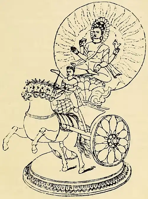 Surya is said to have Aruna (Rosy), the Dawn, the son of Kasyapa and Kadru, as his charioteer.