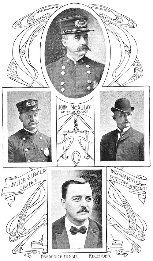 and conveys all of what is now Hudson County, except that part which lies west of the Hackensack River. In a short time Pauw got into disfavor with the New Netherland government for reasons now unknown; and they, in 1634, took his land away from him. The first white inhabitant of the northern end of the county was Hendrick, son of Cornelius Van Vorst, who lived in a small hut in Hoboken, in the year 1636; he stayed for three years, and in the summer of 1639 returned to Holland and died. On February 15, 1640, Aret. T. Van Putten secured the place, he, without delay, began to improve his home, he cleared the land, fenced in fields, and maintained a general farm. He erected a brew house and thus became the first brewer in the State and Hoboken, the place where beer was first brewed. On the breaking out of the Indian War in 1643, Van Putten was away from home on a trading expedition and was killed near Sandy Hook. His farm and buildings were destroyed and burnt, and such was the fury of the Indians that the place was abandoned by every white settler. The Indians must, at this time, have gotten complete control of this entire part of the county, for we find another deed, conveying this property to the whites, which is, in part, as follows:— "On the 30th day of January, 1658, the Indians sold to the Noble Lord Director General Pieter Stuyvesant and Council of New Netherlands a tract of land lying on the west side of the North River. "Beginning from the Great Clip (Dutch for stone, referring to the Palisades) above Wiehachen (note the spelling), and from there right through the land above the Island Sikakes (meaning Seacaucus) and therefrom thence to the Kill von Coll, and so along the Constables Hoeck again to the aforesaid clip above Wiehachen." Perhaps the price paid for this vast piece of land now worth many millions of dollars, would interest you. This tract was purchased for 80 fathoms of Wampum, 20 fathoms of cloth, 12 brass kettles, 6 guns, 1 double brass kettle, and half barrel of strong beer, valued in all at $675.00. Before this tract of land was settled there was a settlement made at Bergen, which is the oldest town in this State; it was settled in 1616 by Dutch colonists, and the first house was located about where Bergen Square is now. ![]() Bergen County, was included in this Township of Bergen, and although there were in latter years settlements in different parts of the county, they were all governed by Bergen township. On Octobr 14, 1656, Nicholas Verleth married Anna, the sister of Governor Stuyvesant, (mentioned in aforesaid deed) who was also the widow of Samuel Bayard. and on February 5, 1663, he received from Governor Stuyvesant a grant of 138 morgens of land, which is now Hoboken and North Hudson. Varleth died while in possession of this land in 1675, and from his heirs, Samuel Bayard, his step-son derived title. William Bayard, one of the latter's descendents, was the owner, and in possession when the Revolutionary War broke out. After the City of New York had fallen into the hands of the enemy, and the patriot army had been driven back toward the Delaware, Mr. Bayard, who at first had been active in the cause of the colonies, withdrew his assistance, and on May 1, 1777, joined the army of the King; for this act his property was confiscated to the State, and advertised by the commissioners of forfeited estates to be sold. On August 25, 1784, the tract of land which comprises West Hoboken, was sold by Commissioner Wm. Herring, and among the buyers at this sale were John Stevens, who bought almost all the property north of Stevens street, this property afterwards became the property of the Hoboken Land Improvement Company. On May 6, of the same year, Wm. Jackson became the owner of a large tract of land adjoining Stevens parcel. On March 21, 1785, Cornelius Van Vorst bought another large piece of this land which comprised the middle western part of the town. A short time after these sales the owners sold parcels to other people, among whom were the De Motts, Traphagens, Van Reipens & Van Winkle's. A large tract of land in the southeastern part of our town was in 1770, owned by a man named Merselis. From his heirs it passed into the hands of our late citizen, John Syms. As I stated previously, all of this territory was part of the Township of Bergen, but this old town was soon to become a thing of the past, because one by one, boroughs began to seceed from her, until on February 22, 1840, the whole southern part of Bergen County was formed into the County of Hudson, and instead of Bergen Township being the only municipality, the new county was divided into five townships, viz.:—Bergen (which comprised all of North Hudson and what is now Bergen in Jersey City), Harrison, Jersey City, and Van Vorst. | ||||||||||||