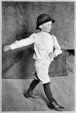 The picture of Alice needs but little explanation to the average school girl. Skipping rope is one of the favorite games which never loses its fascination. To substitute a ribbon for a rope and draw it tightly across the back seems a simple matter. Yet the picture is hard to make satisfactory simply because it requires entire self-forgetfulness to free it from stiffness. The original Alice is having a delightful time with no thought of looking pretty. Our little Alice, when practicing privately in the school hall, threw herself into the game with charming abandon and grace, not unworthy of the original. But when the eyes of the schoolroom were focused upon her, she lost her charm. Only a premiere danseuse would feel at ease under such circumstances.